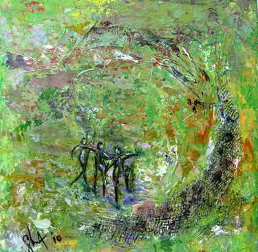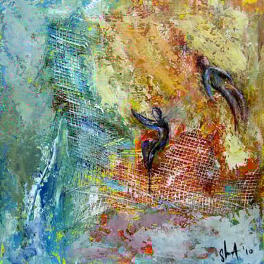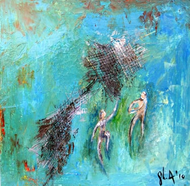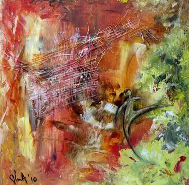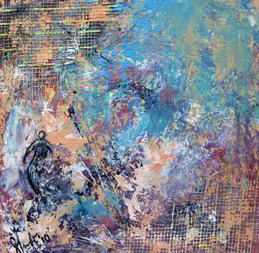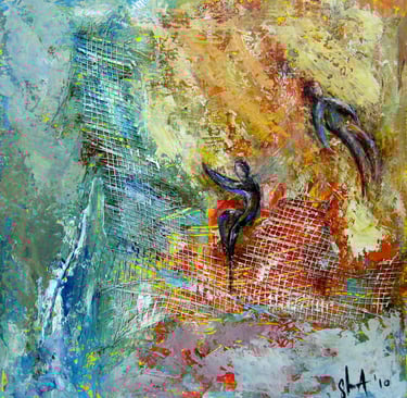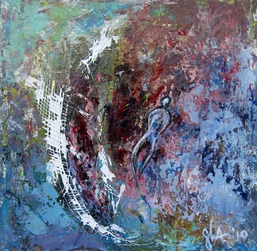 My artistic journey is a personal exploration of emotions and reflections through layered acrylics.